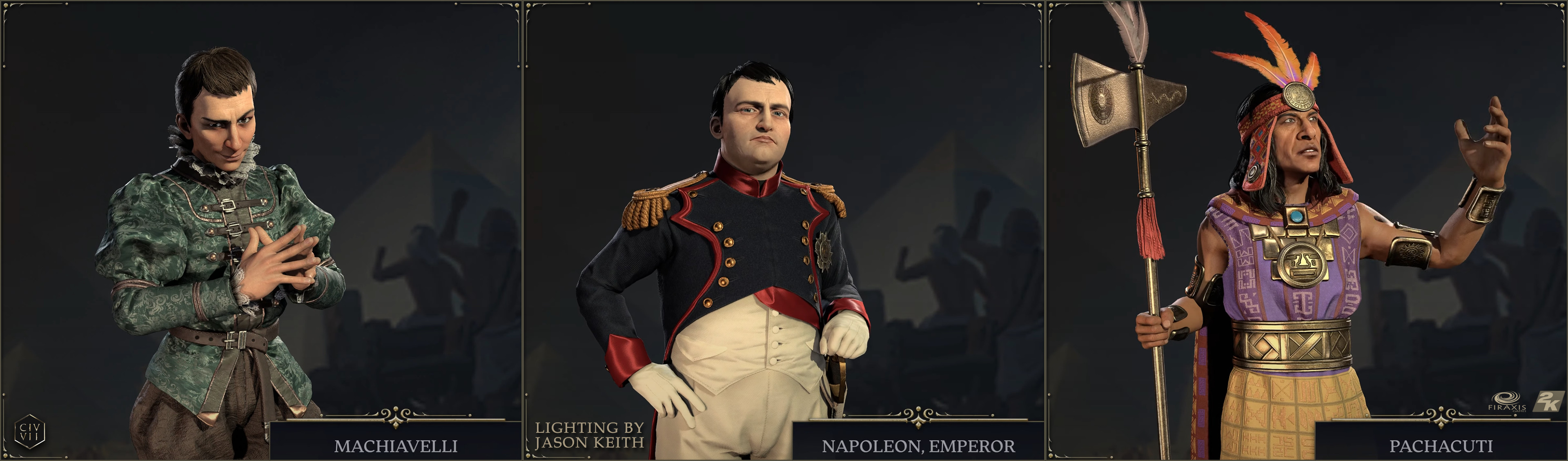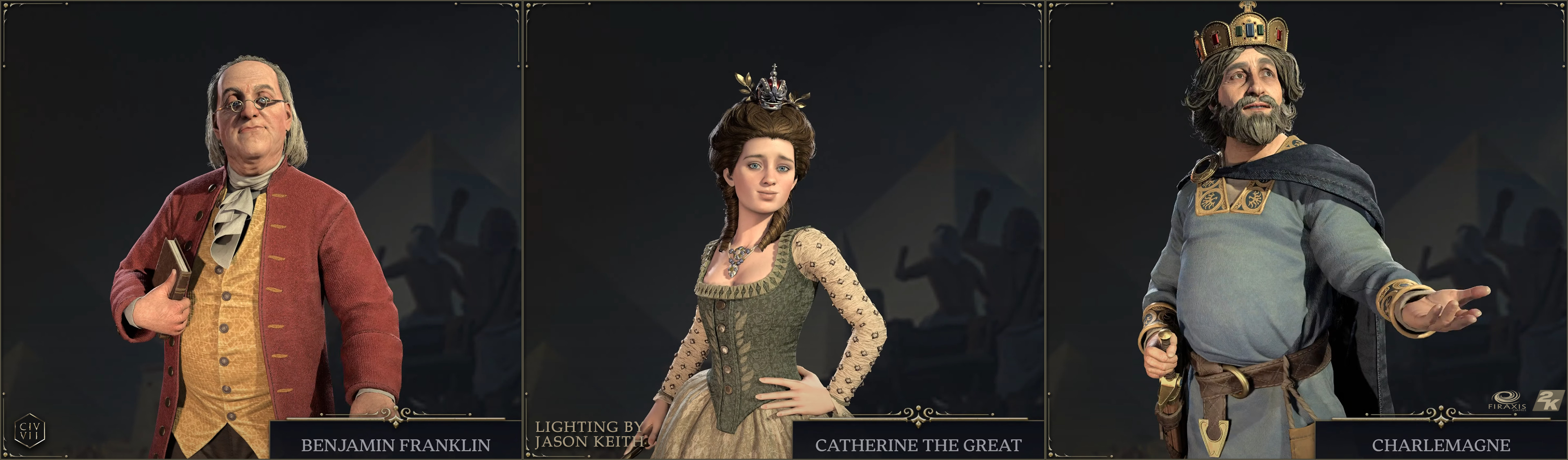 World lighting, Atmosphere, Color Grading and Leader character lighting for Sid Meyer's Civilization VII by Firaxis Games. Published by 2K.